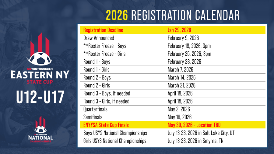 For more information on our State Cup, contact Diana Knight at diana@enysoccer.com
