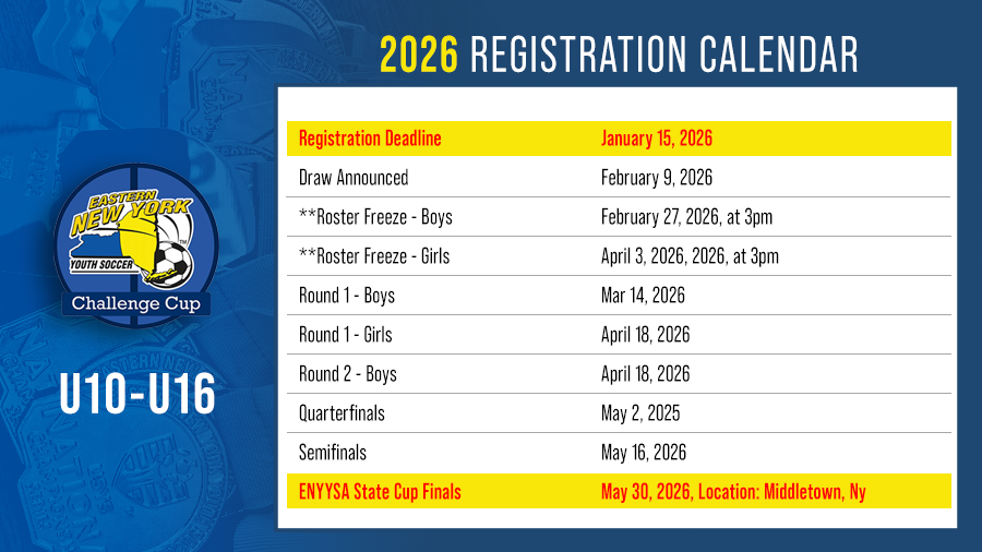 For U12 and up, all teams playing in ENY Member Leagues Division 1 and below are eligible.
