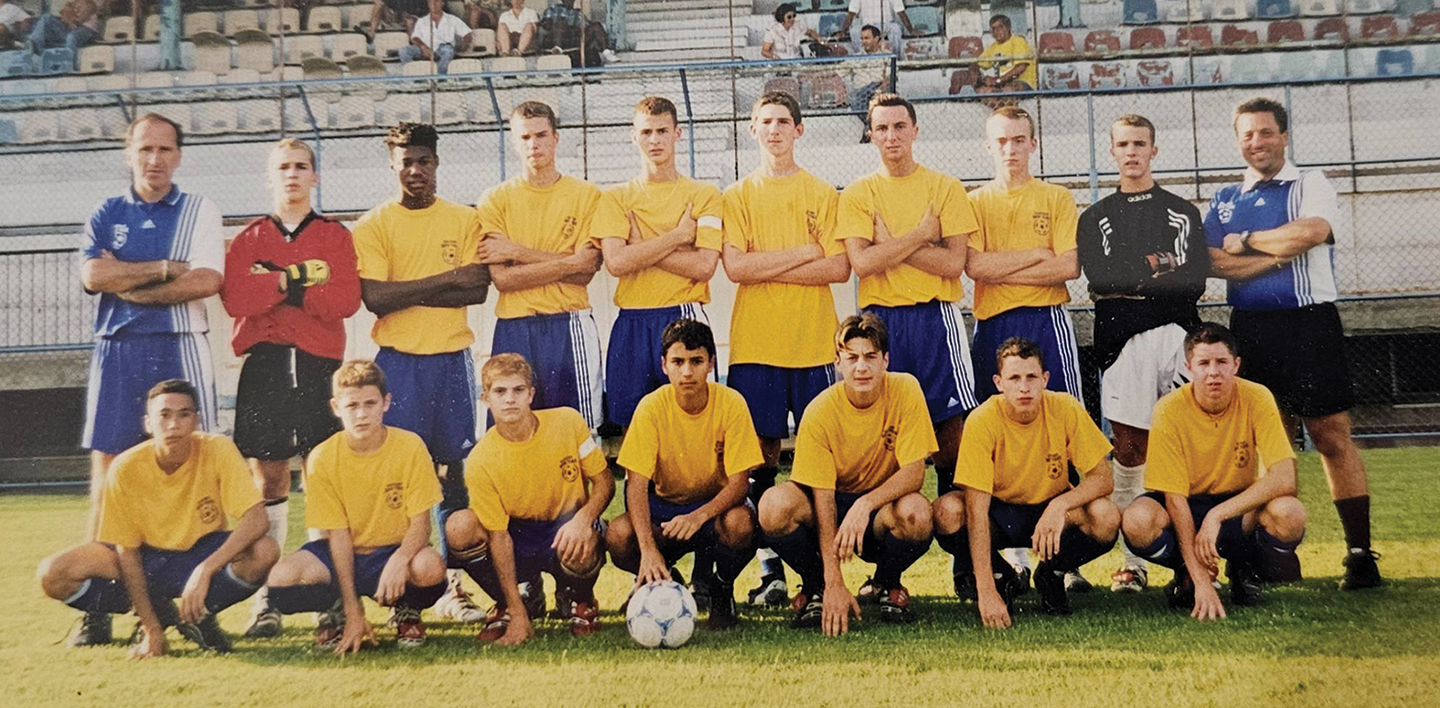 Frank is in the back row on the far left with his Eastern New York ODP team of boys born in 1984 as the squad toured Greece and Italy in the summer of 1999. This photo is from Formia, Italy, before defeating the local men’s team.