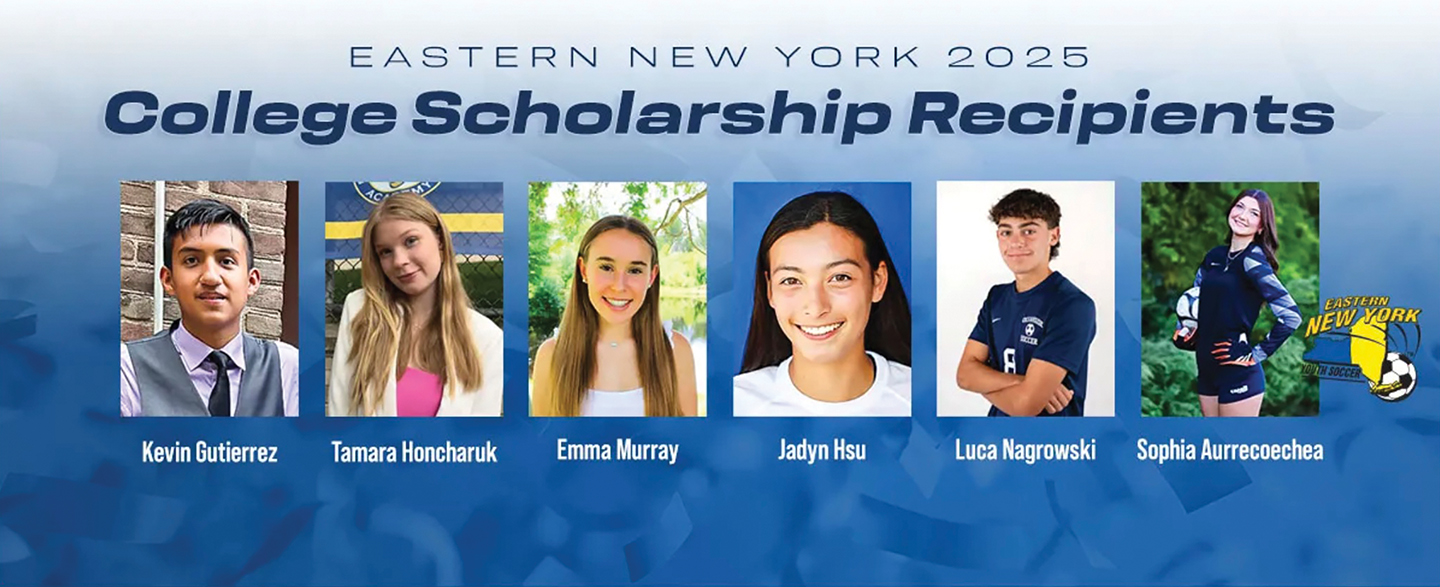 April 23, 2026-The Eastern New York Youth Soccer Association (ENYYSA) awards college scholarships for deserving high school seniors. The scholarships available are named after Jack Bauman plus Patricia Louise Masotto and Brenda Driscoll (four total scholarships for girls) and Livio D’Arpino (two scholarships for boys).